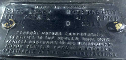 1972 Chevelle Body Number Plates ~ Baltimore, MD. (B)